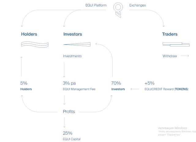 75% dari semua keuntungan dikembalikan kepada Investor dan Pemegang. Sisa 25% dikirim ke grup investasi EQUI sebagai hadiah untuk eksekusi.