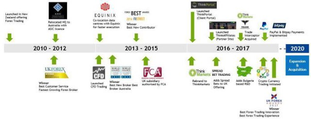 Didirikan pada tahun 2010 dengan nama "ThinkForex", perusahaan telah mengambil langkah untuk mengembangkan non-ThinkMarkets, grup keuangan yang berkantor pusat di London dan Melbourne, dan telah berhenti berinovasi teknologi dan menciptakan standar industri dalam terjemahan. pelayanan pelanggan.