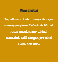ZeCash will use Proof of Stake protocols to process each transaction. "Lurking" protocol pays every holder of ZeCash by "Minting" all the coins stored in "Wallet." The more ZeCash you hold, the more you earn, up to 5% every month.