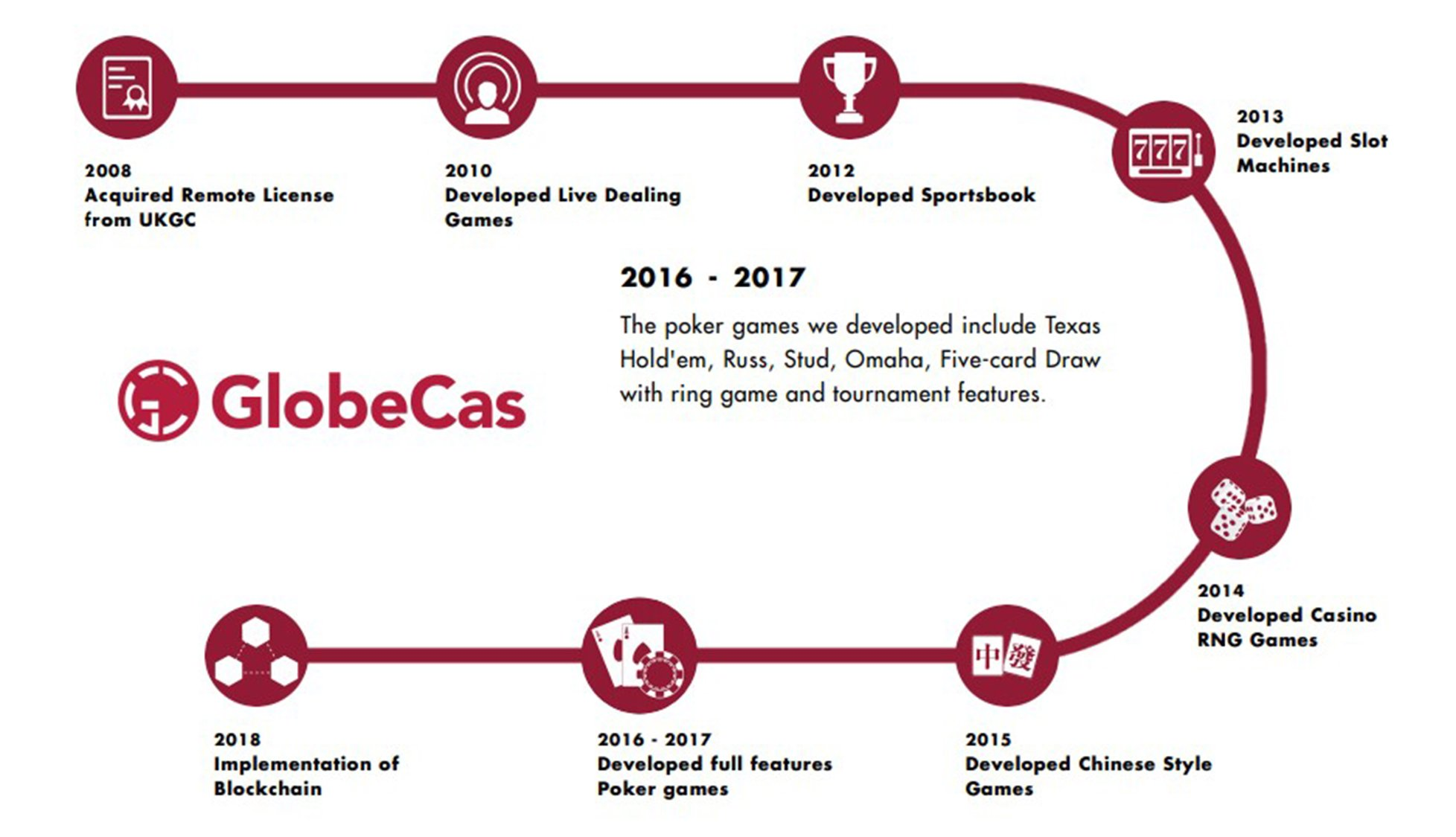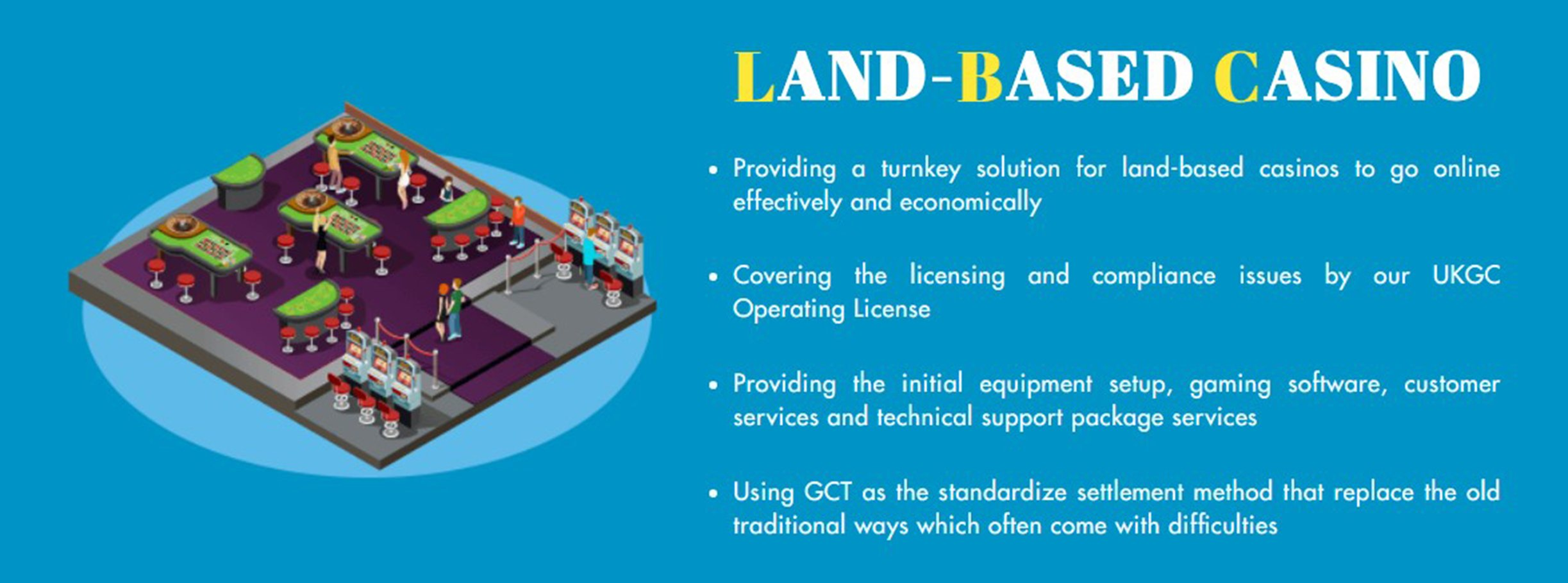 Dalam industri game, baik kasino berbasis darat dan pemain online menghadapi banyak tantangan di berbagai bidang. Dengan popularitas kasino online yang sedang berlangsung, kasino berbasis lahan akan secara perlahan diganti. Di sisi lain, banyak pemain online menemukan bahwa bermain online tidak menawarkan pengalaman bermain yang sama di kasino berbasis lahan. Perusahaan kami GlobeCas, meningkat sebagai tanggapan terhadap tantangan ini dan memberikan solusi penuh.