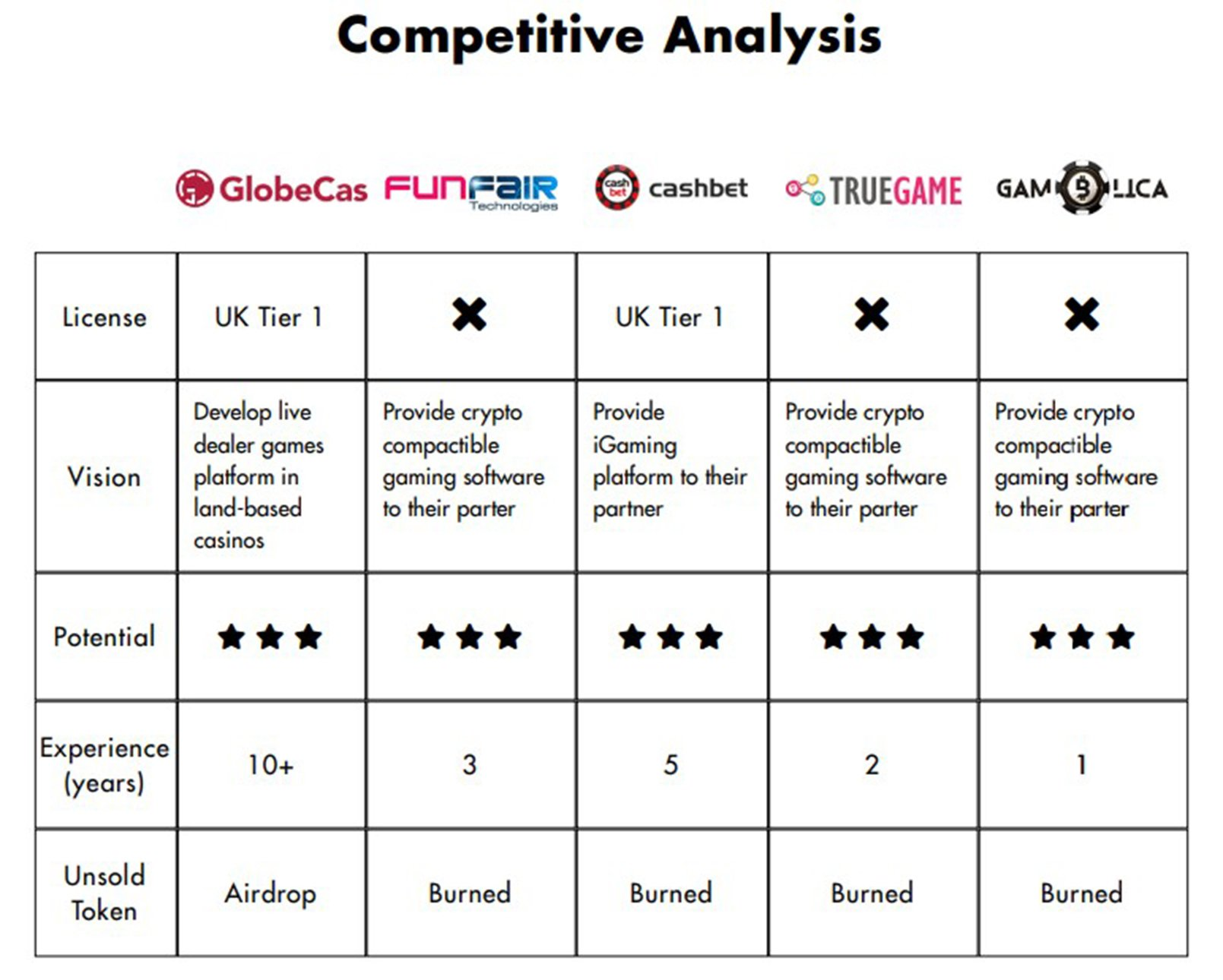 Dengan bermitra dengan kasino batu bata dan mortir di berbagai negara, pemain dapat mengunjungi kasino di seluruh dunia dengan komputer atau perangkat seluler mereka, semuanya dalam waktu nyata! Bersama dengan permainan kasino kami yang berkembang baik, GlobeCas akan benar-benar mereformasi industri game. Berdasarkan 13 tahun pengalaman bisnis yang solid dan analisis mendalam dari dunia kripto, GlobeCas akan menjadi contoh utama tentang bagaimana industri ini dimaksudkan.