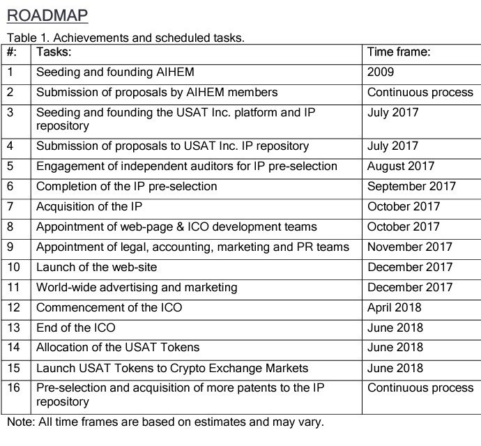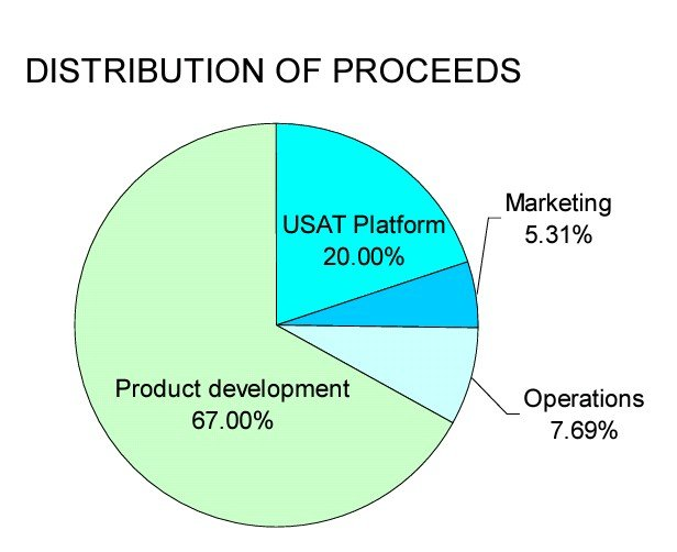 USAT Inc . memiliki pipa produk terjamin yang menghasilkan pendapatan. Karena USAT Inc. adalah organisasi nirlaba, secara hukum semua orang yang hanya untuk mengakses ke dalam organisasi. Dana yang selama ICO akan digunakan untuk proyek, pengembangan dan implementasi proyek platform USAT dan untuk mendorong permintaan token.